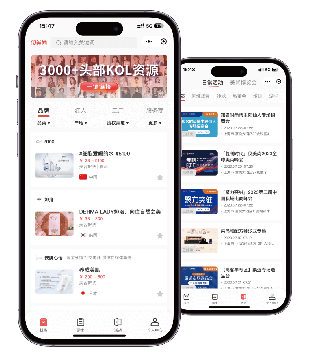 儀美尚鏈接5000家以上的美妝全渠道零售商會員企業,累計覆蓋企業店鋪10萬家,囊括淘寶、天貓、天貓國際、京東、拼多多、抖音、快手、小紅書 有贊等各大電商平臺,還有擁有私域力量的買手代購團長,以及覆蓋全國的線下化妝品專營店。